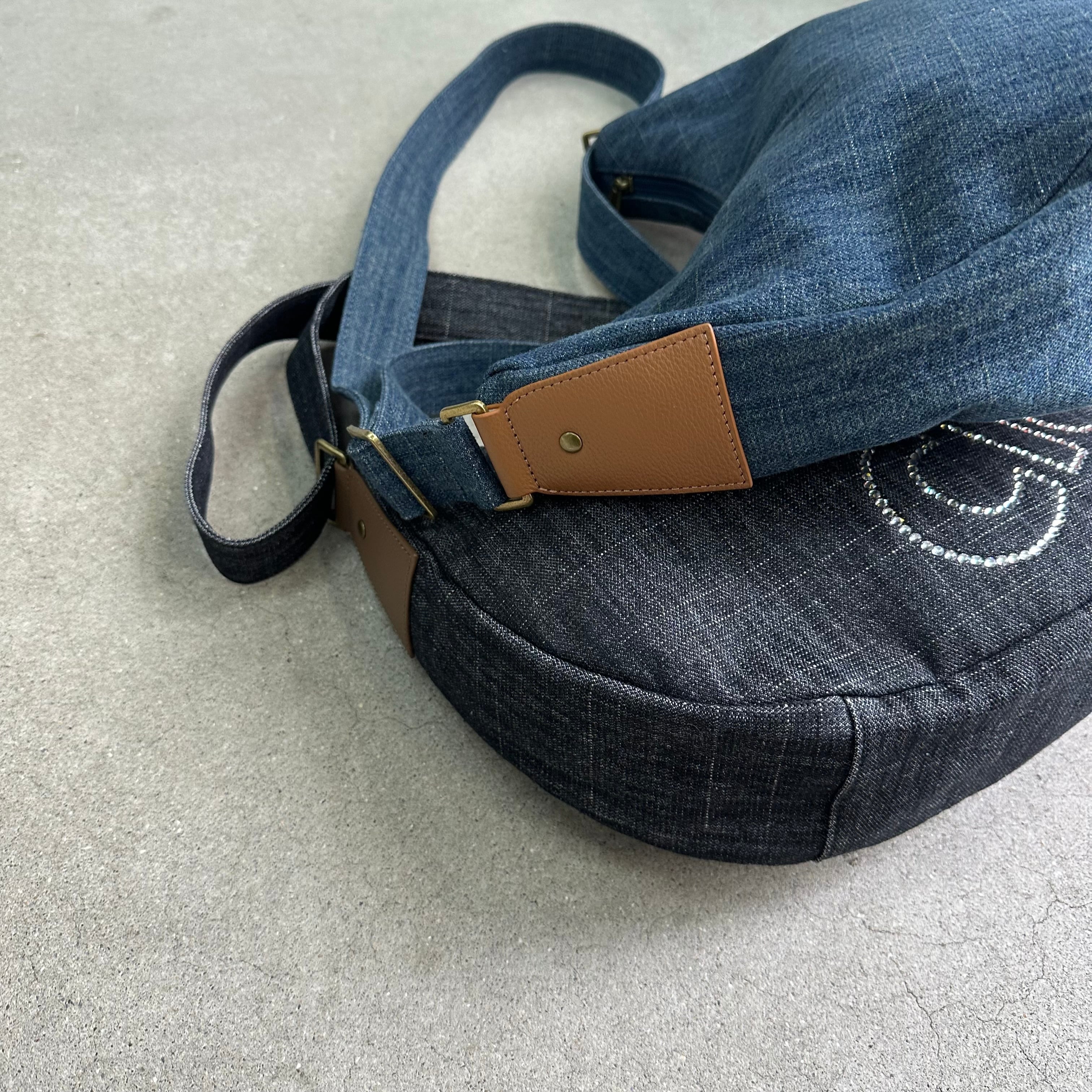 デニム素材のショルダーバッグ。