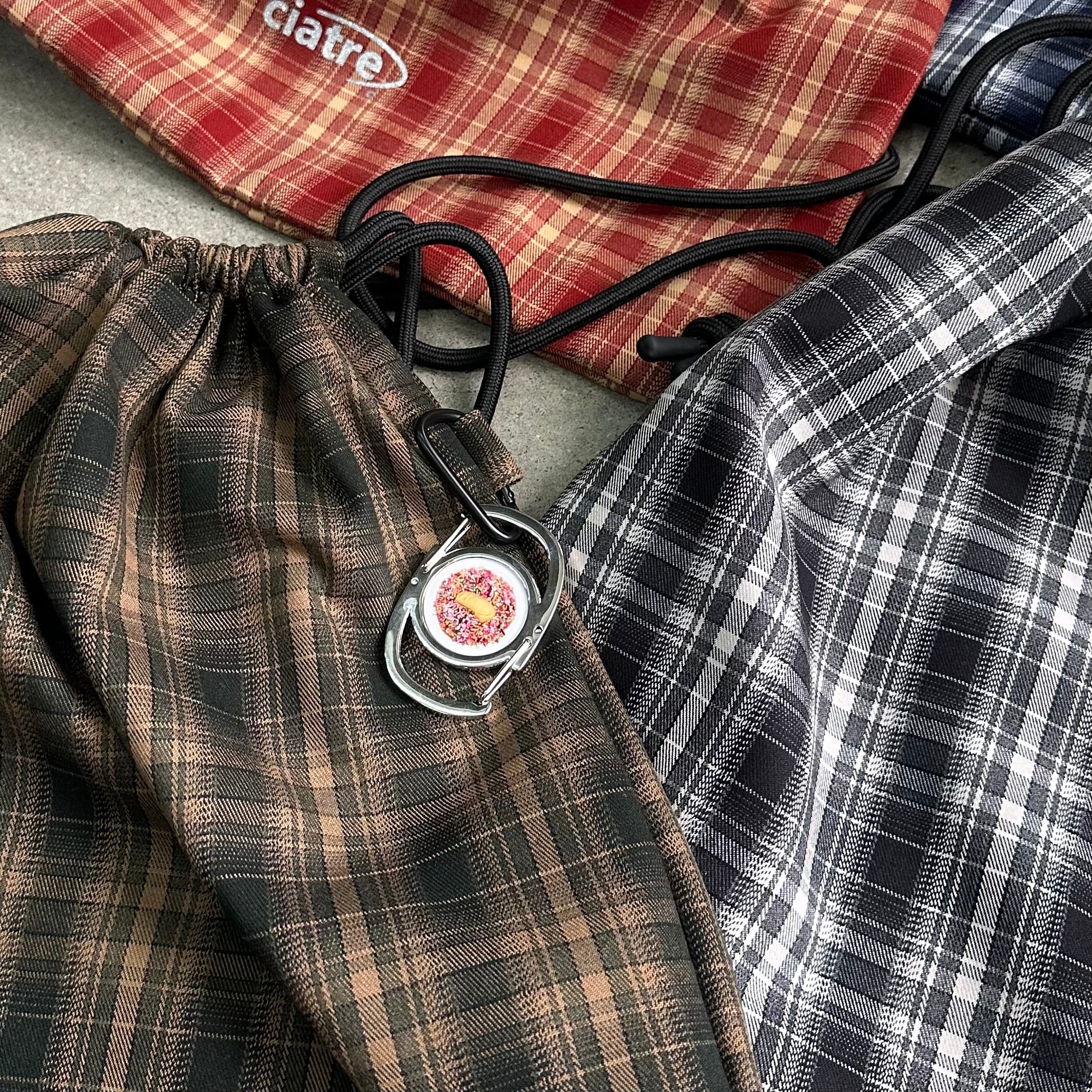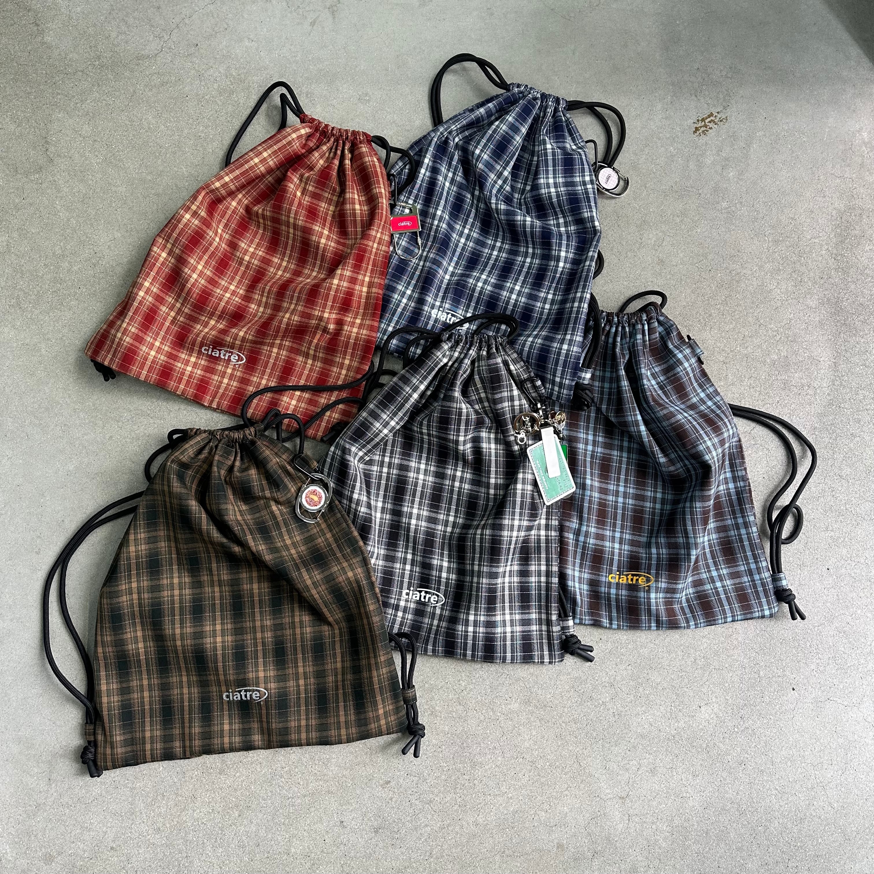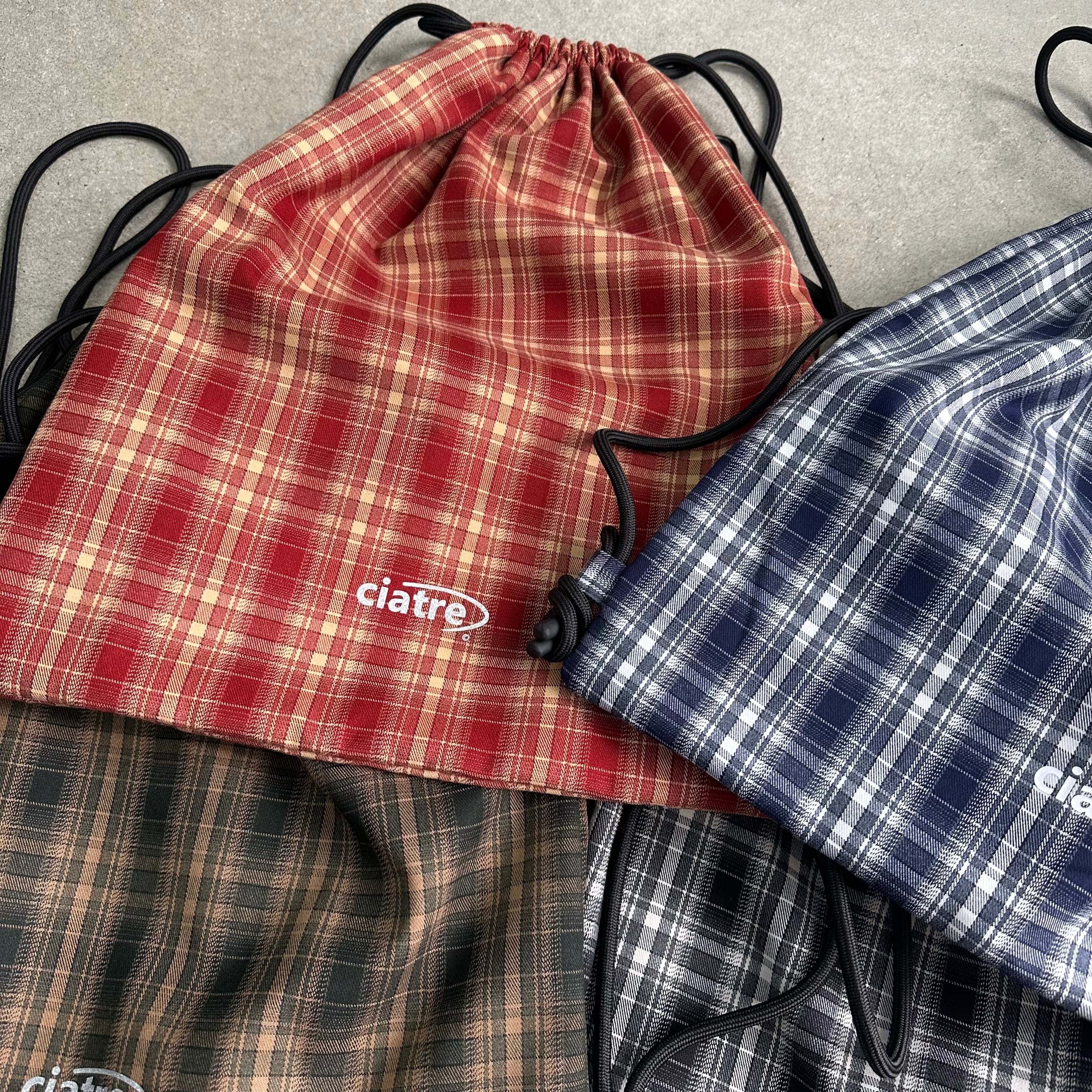 チェック柄が特徴的なナップサック。