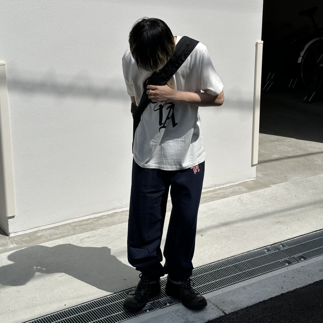 ルーズシルエットのスウェットルームパンツ。